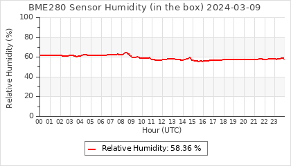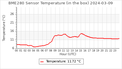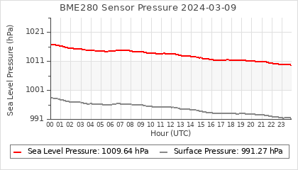 Experimental atmospheric pressure measurement with a simple sensor: BOSCH BME280The instrument is in the data collection box of the CR10X, the temperature and humidity do not reflect the real air conditions, because the box is in the sun and is not properly ventilated for these measurements.