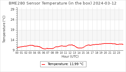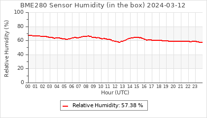Experimental atmospheric pressure measurement with a simple sensor: BOSCH BME280The instrument is in the data collection box of the CR10X, the temperature and humidity do not reflect the real air conditions, because the box is in the sun and is not properly ventilated for these measurements.