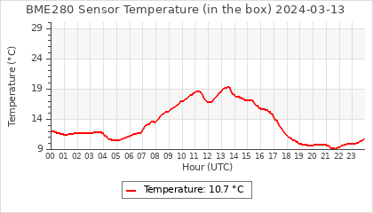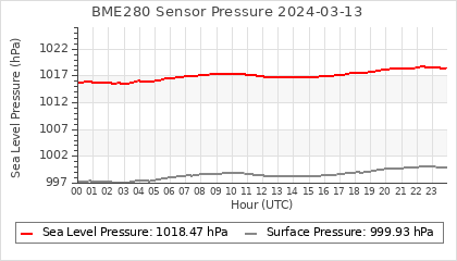 Experimental atmospheric pressure measurement with a simple sensor: BOSCH BME280The instrument is in the data collection box of the CR10X, the temperature and humidity do not reflect the real air conditions, because the box is in the sun and is not properly ventilated for these measurements.