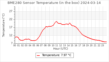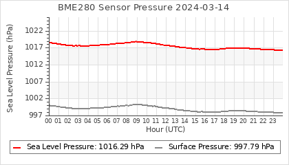 Experimental atmospheric pressure measurement with a simple sensor: BOSCH BME280The instrument is in the data collection box of the CR10X, the temperature and humidity do not reflect the real air conditions, because the box is in the sun and is not properly ventilated for these measurements.