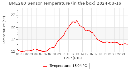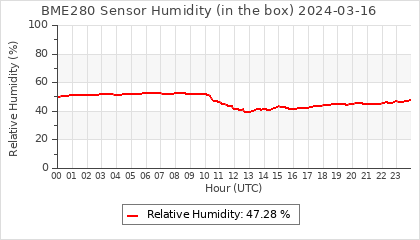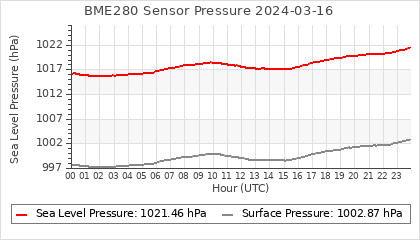 Experimental atmospheric pressure measurement with a simple sensor: BOSCH BME280The instrument is in the data collection box of the CR10X, the temperature and humidity do not reflect the real air conditions, because the box is in the sun and is not properly ventilated for these measurements.