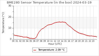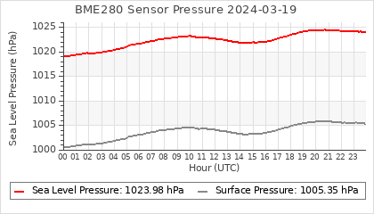 Experimental atmospheric pressure measurement with a simple sensor: BOSCH BME280The instrument is in the data collection box of the CR10X, the temperature and humidity do not reflect the real air conditions, because the box is in the sun and is not properly ventilated for these measurements.
