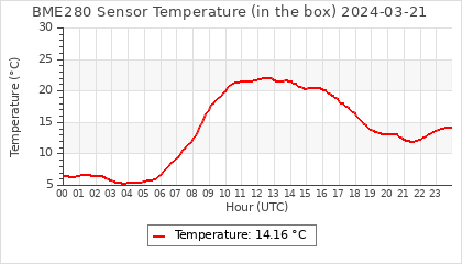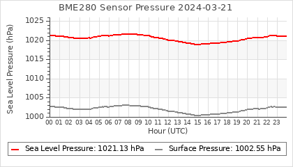 Experimental atmospheric pressure measurement with a simple sensor: BOSCH BME280The instrument is in the data collection box of the CR10X, the temperature and humidity do not reflect the real air conditions, because the box is in the sun and is not properly ventilated for these measurements.