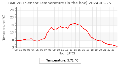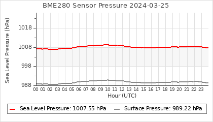 Experimental atmospheric pressure measurement with a simple sensor: BOSCH BME280The instrument is in the data collection box of the CR10X, the temperature and humidity do not reflect the real air conditions, because the box is in the sun and is not properly ventilated for these measurements.