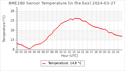 Experimental atmospheric pressure measurement with a simple sensor: BOSCH BME280The instrument is in the data collection box of the CR10X, the temperature and humidity do not reflect the real air conditions, because the box is in the sun and is not properly ventilated for these measurements.