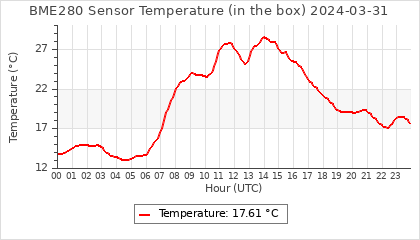 Experimental atmospheric pressure measurement with a simple sensor: BOSCH BME280The instrument is in the data collection box of the CR10X, the temperature and humidity do not reflect the real air conditions, because the box is in the sun and is not properly ventilated for these measurements.