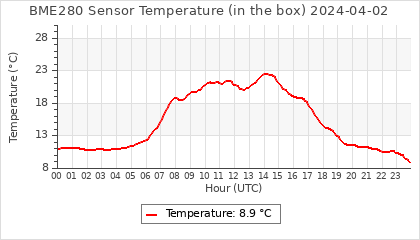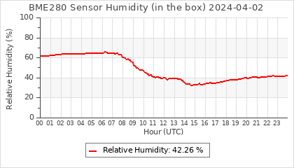 Experimental atmospheric pressure measurement with a simple sensor: BOSCH BME280The instrument is in the data collection box of the CR10X, the temperature and humidity do not reflect the real air conditions, because the box is in the sun and is not properly ventilated for these measurements.