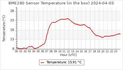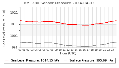 Experimental atmospheric pressure measurement with a simple sensor: BOSCH BME280The instrument is in the data collection box of the CR10X, the temperature and humidity do not reflect the real air conditions, because the box is in the sun and is not properly ventilated for these measurements.