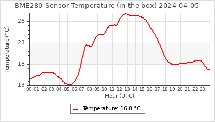 Experimental atmospheric pressure measurement with a simple sensor: BOSCH BME280The instrument is in the data collection box of the CR10X, the temperature and humidity do not reflect the real air conditions, because the box is in the sun and is not properly ventilated for these measurements.