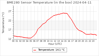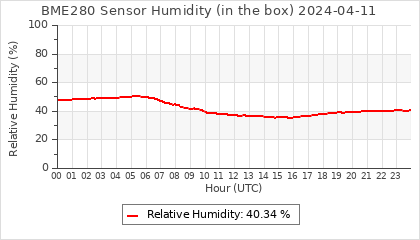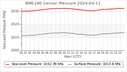 Experimental atmospheric pressure measurement with a simple sensor: BOSCH BME280The instrument is in the data collection box of the CR10X, the temperature and humidity do not reflect the real air conditions, because the box is in the sun and is not properly ventilated for these measurements.