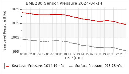 Experimental atmospheric pressure measurement with a simple sensor: BOSCH BME280The instrument is in the data collection box of the CR10X, the temperature and humidity do not reflect the real air conditions, because the box is in the sun and is not properly ventilated for these measurements.