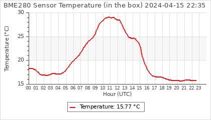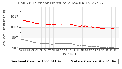 Experimental atmospheric pressure measurement with a simple sensor: BOSCH BME280The instrument is in the data collection box of the CR10X, the temperature and humidity do not reflect the real air conditions, because the box is in the sun and is not properly ventilated for these measurements.