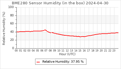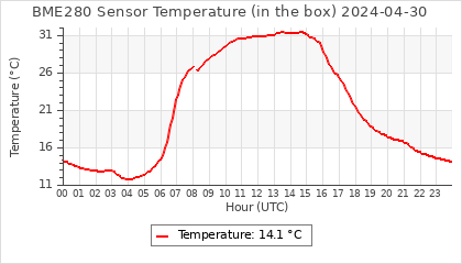 Experimental atmospheric pressure measurement with a simple sensor: BOSCH BME280The instrument is in the data collection box of the CR10X, the temperature and humidity do not reflect the real air conditions, because the box is in the sun and is not properly ventilated for these measurements.