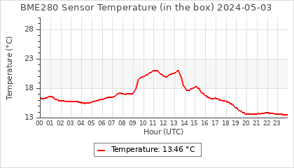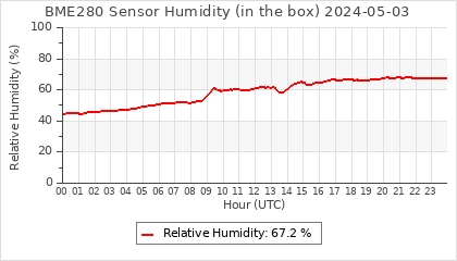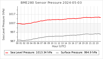 Experimental atmospheric pressure measurement with a simple sensor: BOSCH BME280The instrument is in the data collection box of the CR10X, the temperature and humidity do not reflect the real air conditions, because the box is in the sun and is not properly ventilated for these measurements.