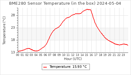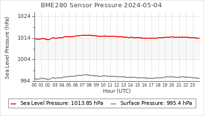 Experimental atmospheric pressure measurement with a simple sensor: BOSCH BME280The instrument is in the data collection box of the CR10X, the temperature and humidity do not reflect the real air conditions, because the box is in the sun and is not properly ventilated for these measurements.