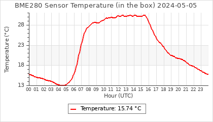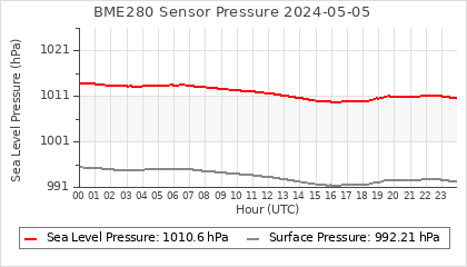 Experimental atmospheric pressure measurement with a simple sensor: BOSCH BME280The instrument is in the data collection box of the CR10X, the temperature and humidity do not reflect the real air conditions, because the box is in the sun and is not properly ventilated for these measurements.