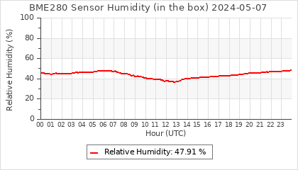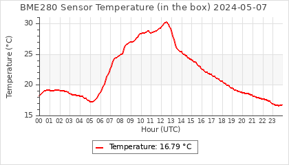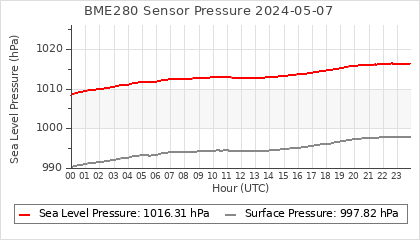 Experimental atmospheric pressure measurement with a simple sensor: BOSCH BME280The instrument is in the data collection box of the CR10X, the temperature and humidity do not reflect the real air conditions, because the box is in the sun and is not properly ventilated for these measurements.