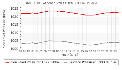 Experimental atmospheric pressure measurement with a simple sensor: BOSCH BME280The instrument is in the data collection box of the CR10X, the temperature and humidity do not reflect the real air conditions, because the box is in the sun and is not properly ventilated for these measurements.
