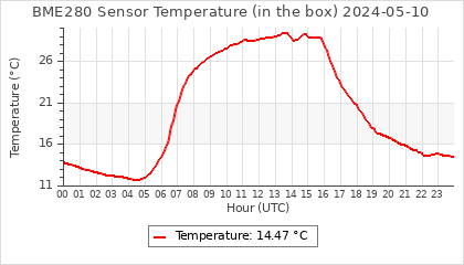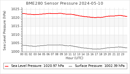 Experimental atmospheric pressure measurement with a simple sensor: BOSCH BME280The instrument is in the data collection box of the CR10X, the temperature and humidity do not reflect the real air conditions, because the box is in the sun and is not properly ventilated for these measurements.