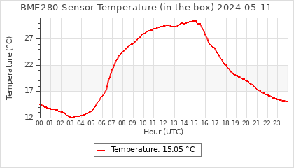 Experimental atmospheric pressure measurement with a simple sensor: BOSCH BME280The instrument is in the data collection box of the CR10X, the temperature and humidity do not reflect the real air conditions, because the box is in the sun and is not properly ventilated for these measurements.