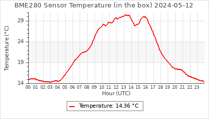 Experimental atmospheric pressure measurement with a simple sensor: BOSCH BME280The instrument is in the data collection box of the CR10X, the temperature and humidity do not reflect the real air conditions, because the box is in the sun and is not properly ventilated for these measurements.