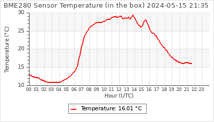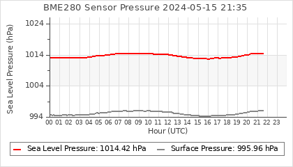 Experimental atmospheric pressure measurement with a simple sensor: BOSCH BME280The instrument is in the data collection box of the CR10X, the temperature and humidity do not reflect the real air conditions, because the box is in the sun and is not properly ventilated for these measurements.