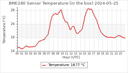 Experimental atmospheric pressure measurement with a simple sensor: BOSCH BME280The instrument is in the data collection box of the CR10X, the temperature and humidity do not reflect the real air conditions, because the box is in the sun and is not properly ventilated for these measurements.