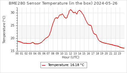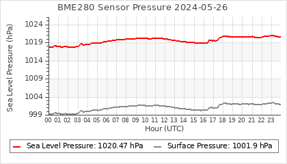 Experimental atmospheric pressure measurement with a simple sensor: BOSCH BME280The instrument is in the data collection box of the CR10X, the temperature and humidity do not reflect the real air conditions, because the box is in the sun and is not properly ventilated for these measurements.