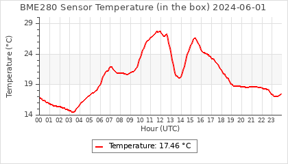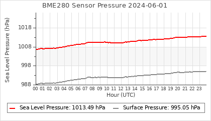 Experimental atmospheric pressure measurement with a simple sensor: BOSCH BME280The instrument is in the data collection box of the CR10X, the temperature and humidity do not reflect the real air conditions, because the box is in the sun and is not properly ventilated for these measurements.
