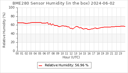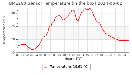 Experimental atmospheric pressure measurement with a simple sensor: BOSCH BME280The instrument is in the data collection box of the CR10X, the temperature and humidity do not reflect the real air conditions, because the box is in the sun and is not properly ventilated for these measurements.