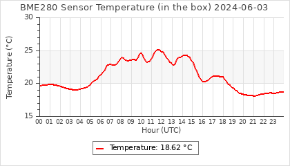 Experimental atmospheric pressure measurement with a simple sensor: BOSCH BME280The instrument is in the data collection box of the CR10X, the temperature and humidity do not reflect the real air conditions, because the box is in the sun and is not properly ventilated for these measurements.