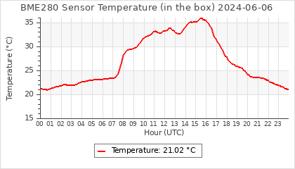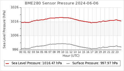 Experimental atmospheric pressure measurement with a simple sensor: BOSCH BME280The instrument is in the data collection box of the CR10X, the temperature and humidity do not reflect the real air conditions, because the box is in the sun and is not properly ventilated for these measurements.