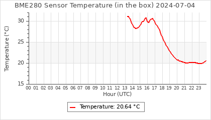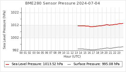 Experimental atmospheric pressure measurement with a simple sensor: BOSCH BME280The instrument is in the data collection box of the CR10X, the temperature and humidity do not reflect the real air conditions, because the box is in the sun and is not properly ventilated for these measurements.