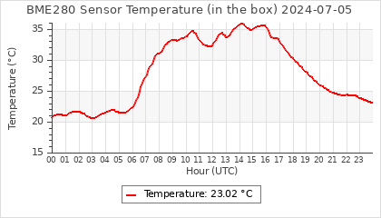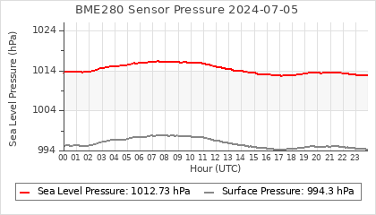 Experimental atmospheric pressure measurement with a simple sensor: BOSCH BME280The instrument is in the data collection box of the CR10X, the temperature and humidity do not reflect the real air conditions, because the box is in the sun and is not properly ventilated for these measurements.
