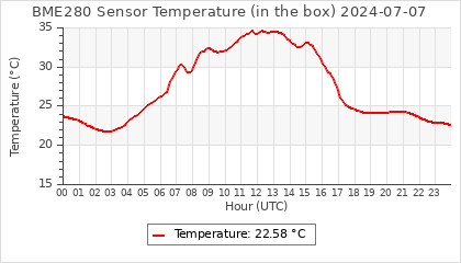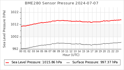 Experimental atmospheric pressure measurement with a simple sensor: BOSCH BME280The instrument is in the data collection box of the CR10X, the temperature and humidity do not reflect the real air conditions, because the box is in the sun and is not properly ventilated for these measurements.