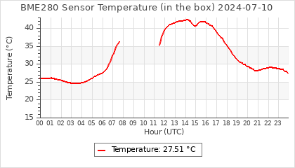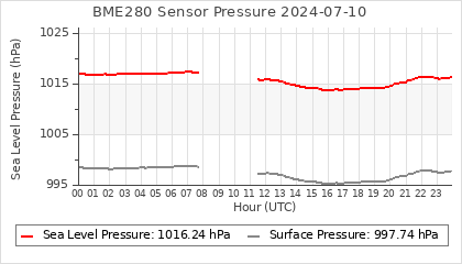 Experimental atmospheric pressure measurement with a simple sensor: BOSCH BME280The instrument is in the data collection box of the CR10X, the temperature and humidity do not reflect the real air conditions, because the box is in the sun and is not properly ventilated for these measurements.