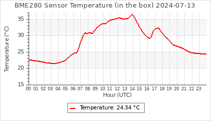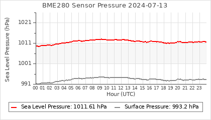 Experimental atmospheric pressure measurement with a simple sensor: BOSCH BME280The instrument is in the data collection box of the CR10X, the temperature and humidity do not reflect the real air conditions, because the box is in the sun and is not properly ventilated for these measurements.