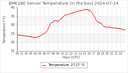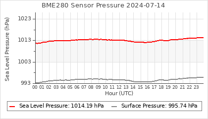 Experimental atmospheric pressure measurement with a simple sensor: BOSCH BME280The instrument is in the data collection box of the CR10X, the temperature and humidity do not reflect the real air conditions, because the box is in the sun and is not properly ventilated for these measurements.