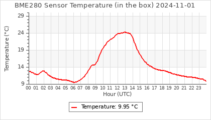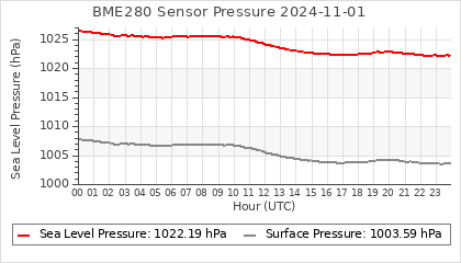 Experimental atmospheric pressure measurement with a simple sensor: BOSCH BME280The instrument is in the data collection box of the CR10X, the temperature and humidity do not reflect the real air conditions, because the box is in the sun and is not properly ventilated for these measurements.