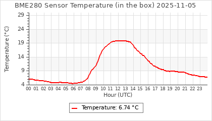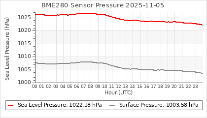 Experimental atmospheric pressure measurement with a simple sensor: BOSCH BME280The instrument is in the data collection box of the CR10X, the temperature and humidity do not reflect the real air conditions, because the box is in the sun and is not properly ventilated for these measurements.
