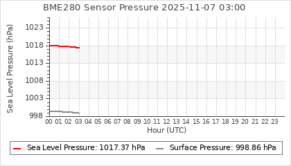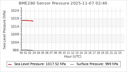 Experimental atmospheric pressure measurement with a simple sensor: BOSCH BME280The instrument is in the data collection box of the CR10X, the temperature and humidity do not reflect the real air conditions, because the box is in the sun and is not properly ventilated for these measurements.