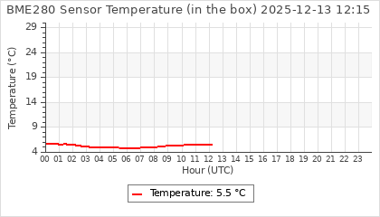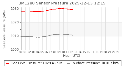 Experimental atmospheric pressure measurement with a simple sensor: BOSCH BME280The instrument is in the data collection box of the CR10X, the temperature and humidity do not reflect the real air conditions, because the box is in the sun and is not properly ventilated for these measurements.