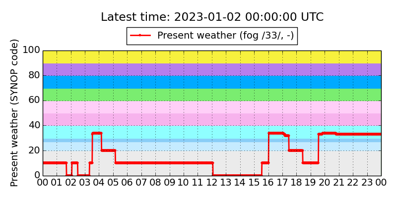 Legend for the background colors of the present weather plot: