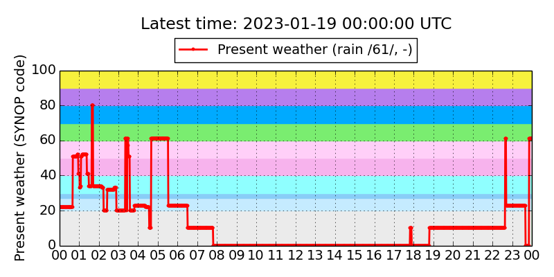 Legend for the background colors of the present weather plot: