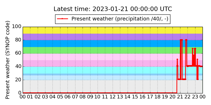 Legend for the background colors of the present weather plot: