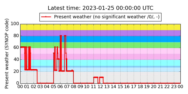 Legend for the background colors of the present weather plot: