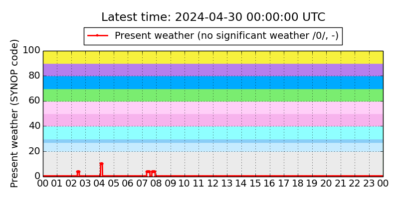 Legend for the background colors of the present weather plot: