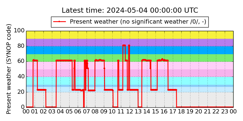 Legend for the background colors of the present weather plot: