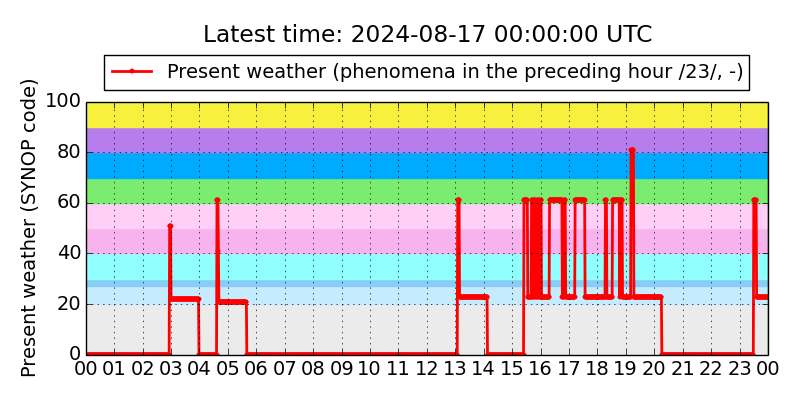 Legend for the background colors of the present weather plot:
