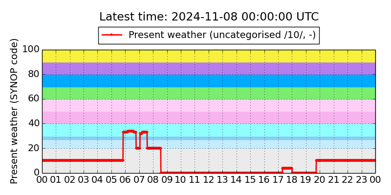 Legend for the background colors of the present weather plot: